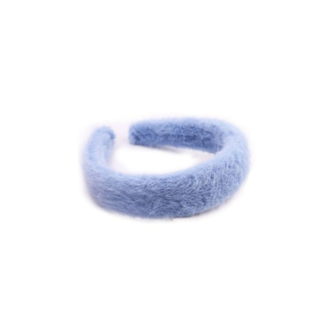 Fluffy matu stīpa - diadēma pūkaina ar pērlēm, gaiši zila