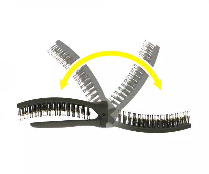 OLIVIA GARDEN Fingebrush Combo ON THE GO ir salokāma maza izmēra matu suka ar unikālu izliektu formu, ideāli piemērota ikdienas matu kopšanai un galvas masāžai. Pateicoties salokāmajam dizainam, iederēsies katrā kosmētikas somiņā un rokassomiņā. Uz roktura ir neliels spogulis, pateicoties kuram jebkurā laikā varat pārbaudīt savu izskatu.