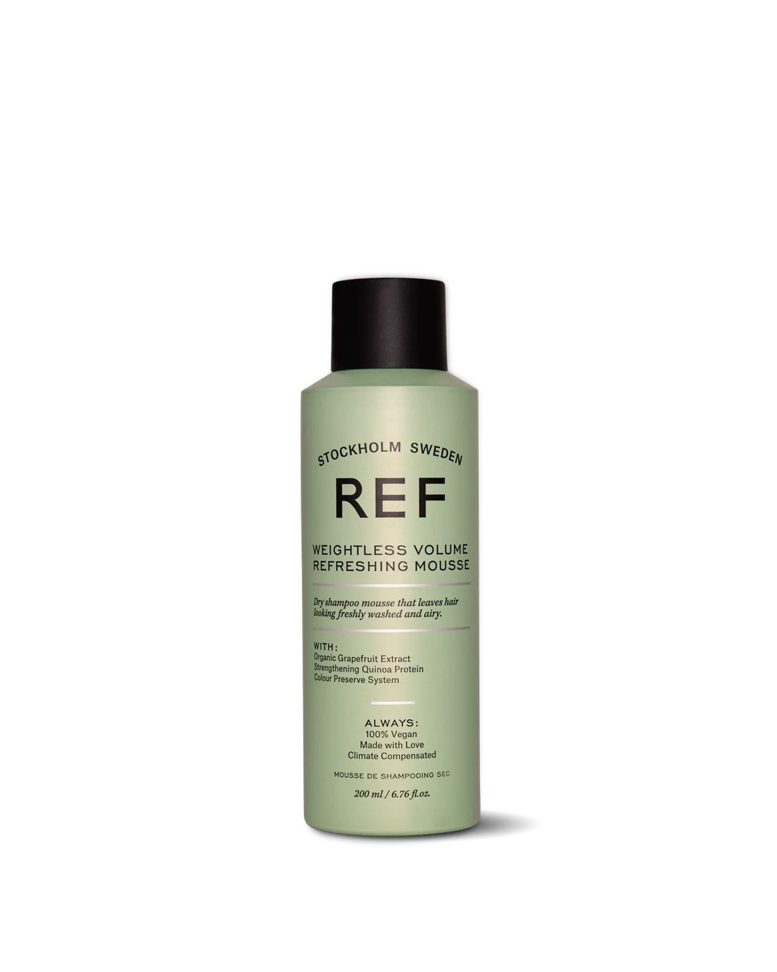 Vieglas sausā šampūna putas, kas atsvaidzina matus starp mazgāšanas reizēm. Unikālas putas, kas viegli uzsūc eļļas, vienlaikus piešķirot matiem apjomu, atstājot matus vieglus, taču ar tekstūru. Vieglās apjoma atsvaidzinošās putas satur lielu procentuālo daudzumu stiprinošā kvinojas proteīna, kas nodrošina ilgstošu veselību. Organiskais greipfrūtu ekstrakts, kas piešķir matiem apjomu un spīdumu. Produkts ir pilns ar kvalitatīvām sastāvdaļām no mūsu pretlūšanas sistēmas.